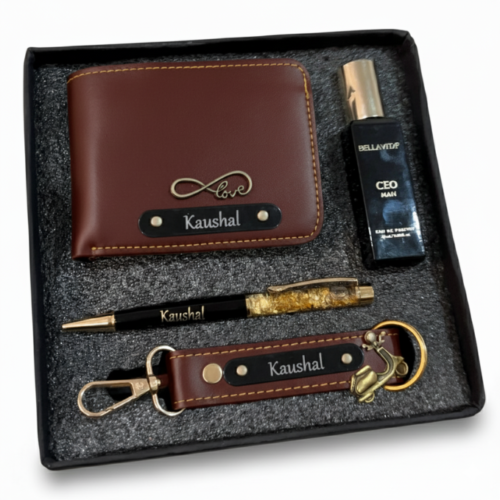 Customised Gift Hamper for Men- Personalised Wallet, Keychain, Pen & Perfume